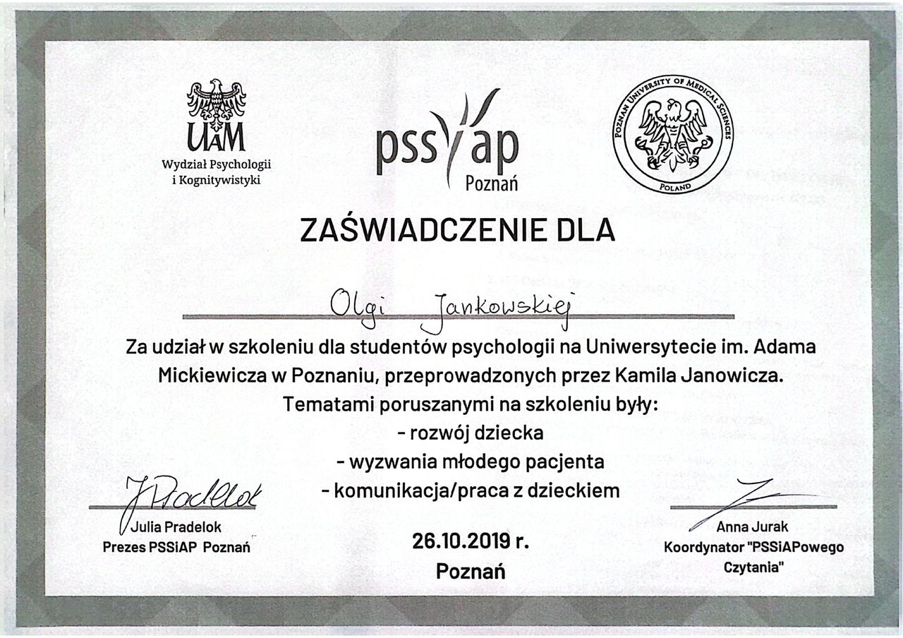 Olga Jankowska: co mówią pacjenci?3 osób dodało swoją opinię. Olga Jankowska ma średnią ocen 5 (na 5 gwiazdek).