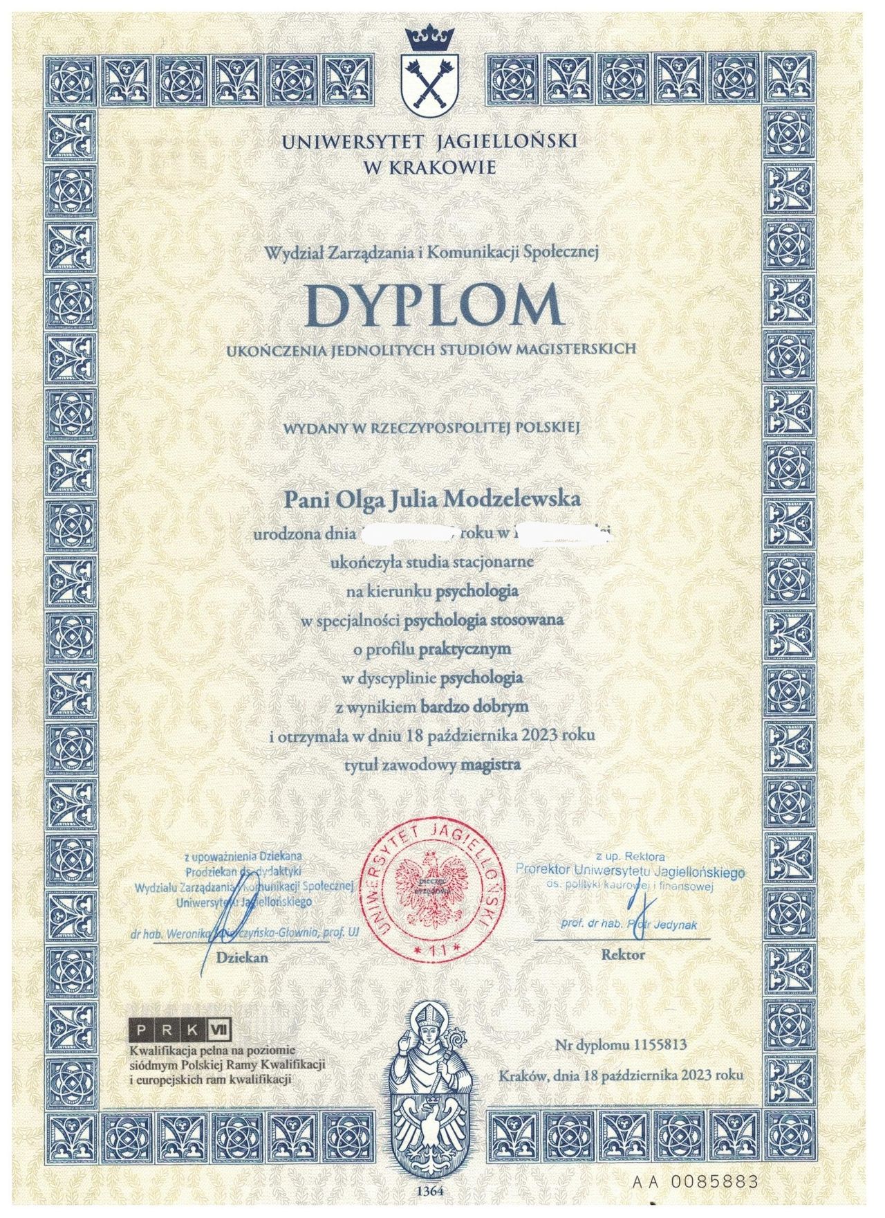 Ukończyłam studia psychologiczne na Uniwersytecie Jagiellońskim, podczas których odbyłam stypendium na uniwersytetach w Portugalii i Wielkiej Brytanii. Zrealizowałam również Studium Pedagogiczne UJ i kurs Trenera Umiejętności Społecznych.