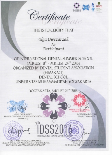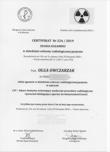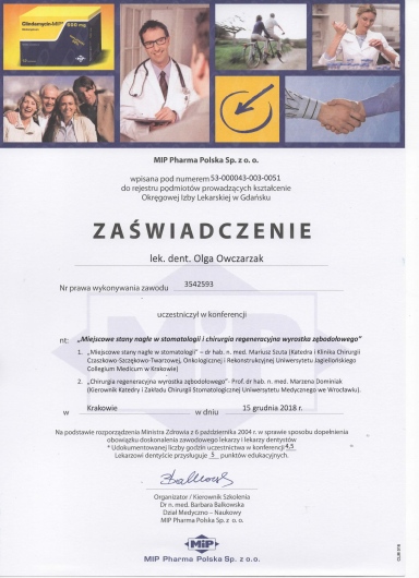Regularnie dbam o rozwój zawodowy uczestnicząc w licznych kursach i szkoleniach stomatologicznych.