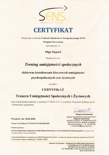 Pracuję indywidualnie i grupowo, również jako certyfikowana Trenerka Umiejętności Społecznych – wspieram dzieci i młodzież w budowaniu relacji i rozwijaniu kompetencji społecznych.