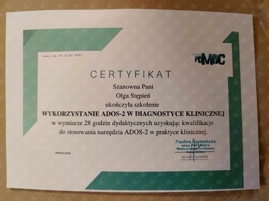 Pani Olga posiada wielką empatię, potrafi nawiązać współpracę i zyskać akceptację nawet bardzo zamkniętych w sobie pacjentów.