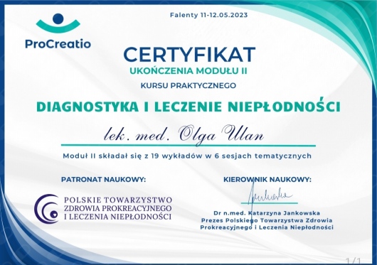 Była to moja pierwsza wizyta u ginekologa. Pani Ulan była niezwykle wyrozumiała i ciepła, szczegółowo wyjaśniła mi wszystkie kwestie związane z wizytą i odpowiedziała wyczerpująco na moje pytania. Badanie pozytywnie przerosło moje oczekiwania. Na pewno będę kontynuować wizyty.