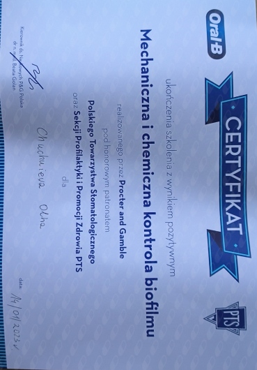 W trakcie wizyty dzieliła się swoją ogromną wiedzą o higienie jamy ustnej i cierpliwie odpowiadała na wszystkie moje pytania. Po zabiegu moje zęby były idealnie czyste, a ja wyszłam z gabinetu z poczuciem pełnej satysfakcji i bezpieczeństwa.
