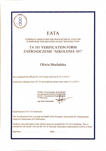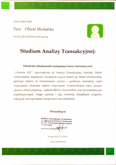 Pani Oliwia od początku wykazuje dużą empatię, czuję się przez nią wysłuchana i zrozumiana, a jej uwagi są zazwyczaj bardzo trafne i dużo wnoszą. Poza tym wykazuje się elastycznością i profesjonalizmem, czuję, że jest godna zaufania.
