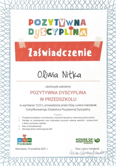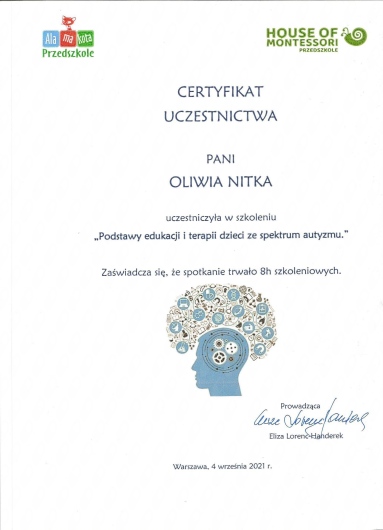 studiów podyplomowych z Integracji Sensorycznej. Od początku swojej pracy jestem związana