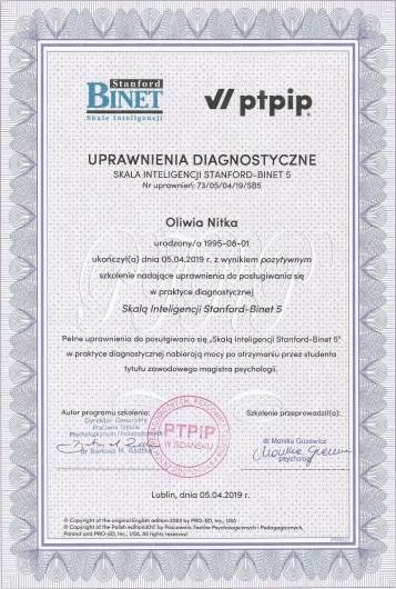 diagnostyczne do stosowania Skali Inteligencji Stanford- Binet 5. Obecnie jestem w trakcie