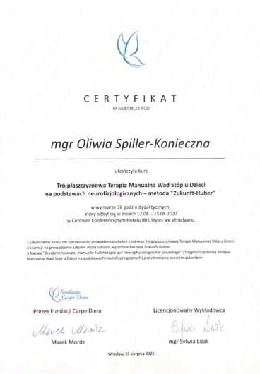 - Trójpłaszczyznowa Terapia Manualna wad stóp u dzieci na podstawach neurofizjologicznych - metoda „Zukunft- Huber”