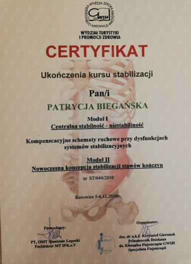 - Akademia Wychowania Fizycznego w Katowicach - studia podyplomowe z zakresu przygotowania motorycznego w grach zespołowych;