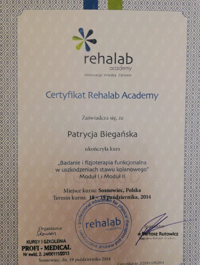 - Badanie i fizjoterapia funkcjonalna w uszkodzeniach stawu kolanowego; Rehalab Academy