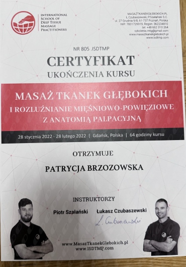 Do Pani Patrycji trafiłam przypadkiem z bólem pleców. Bardzo sympatyczna, ciepła z nieszablonowym podejściem. Przeprowadziła ze mną dokładny wywiad. Fachowe podejście do pacjenta. Wiedza, która przekłada się na jakość masażu.
