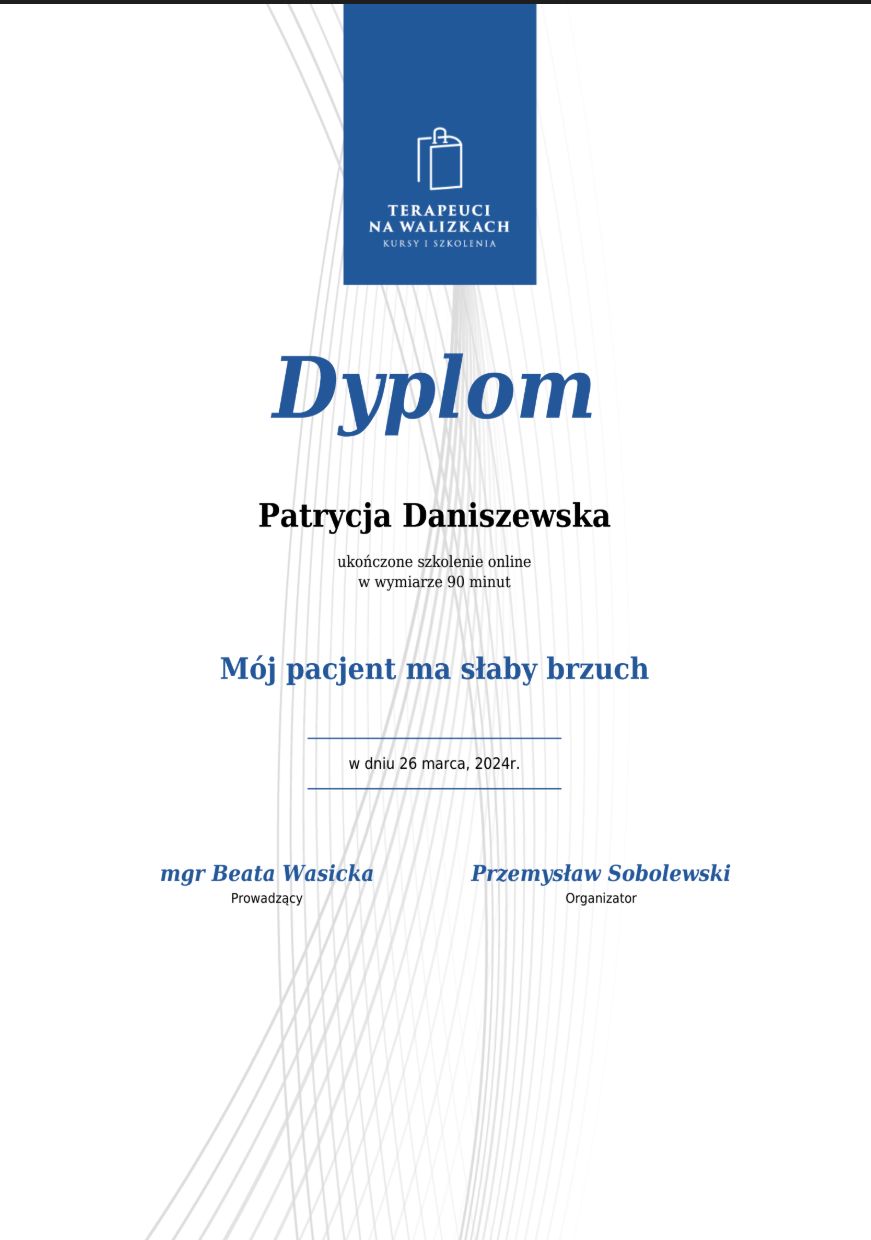 Miło jest mi poinformować, że we wtorki popołudniu w moim gabinecie przyjmuje mgr Martyna Zielińska. Martyna ma doświadczenie w pracy z dziećmi od 3 roku życia oraz z młodzieżą, specjalizuje się w wadach postawy a poza tym wykonuje wkładki (w innym gabinecie), jeżeli zauważy taką potrzebę. Poza tym jest świetną fizjoterapeutką, ma dużą wiedzę i bardzo dobre podejście do pacjentów.