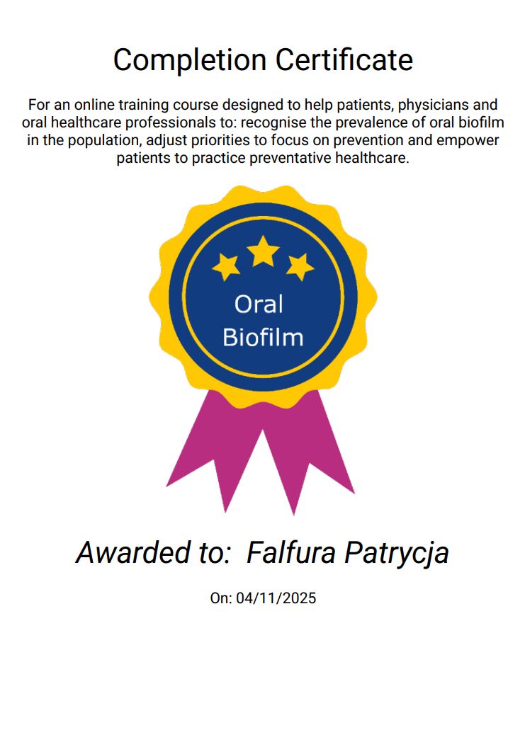 Pani Patrycja Falfura wykonała zabieg higienizacji bardzo starannie i delikatnie. Pełen profesjonalizm, będę wracać.