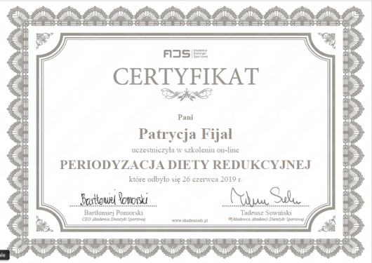 Serdecznie polecam! Współpracujemy już od 8 miesięcy i jestem bardzo zadowolona. Dzięki Pani Patrycji nauczyłam się zdrowego podejścia do odżywiania, skomponowanie diety pomogło mi nabrać zdrowych nawyków i komponowania pełnowarościowych posiłków. Od początku współpracy udało mi się zgubić już 15 kg! Jestem szczęśliwa, że trafiłam właśnie do niej i polecam każdemu kto się zastanawia czy warto. Bardzo dziękuję!