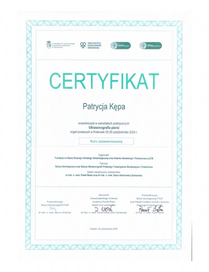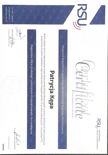 Pani doktor Patrycja Kępa przyjęła mnie z wielką starannością i kulturą. Badanie przebiegło bezstresowo, profesjonalnie pod względem medycznym. Odniosłam wrażenie, że lubi swoją pracę. Życzę Pani spełnienia się w tym zawodzie.