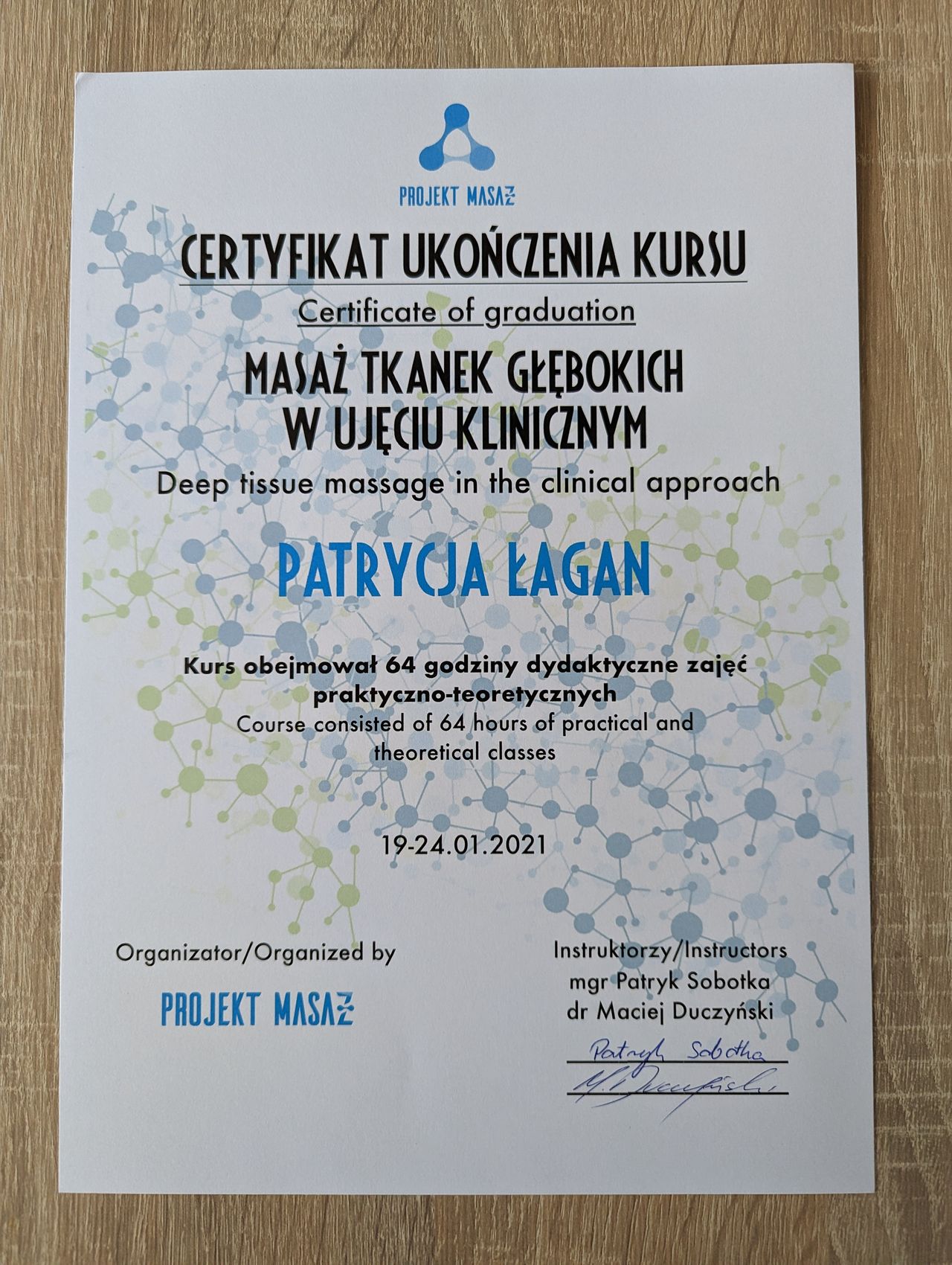 Trafiłam do Patrycji z silnym bólem szyi i już po pierwszej wizycie poczułam ogromną ulgę – różnica była naprawdę nie do opisania. Patrycja dokładnie wszystko mi wyjaśniła, opowiedziała, co się dzieje i jak będzie wyglądała terapia. Ma niesamowite ręce, które potrafią zdziałać cuda – naprawdę można powiedzieć, że kryje się w nich magiczna różdżka. Jest nie tylko świetną specjalistką, ale też cudowną osobą, pełną empatii i ciepła. Z całego serca polecam każdemu, kto potrzebuje profesjonalnej i skutecznej pomocy!