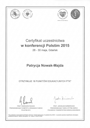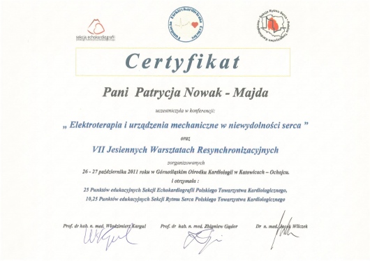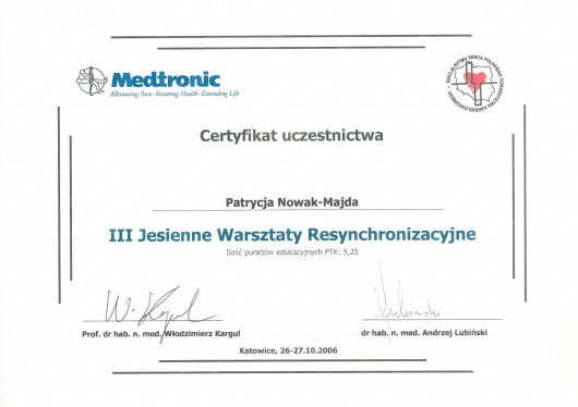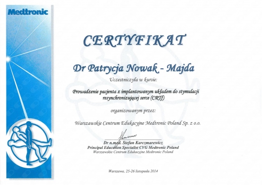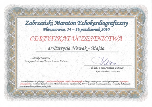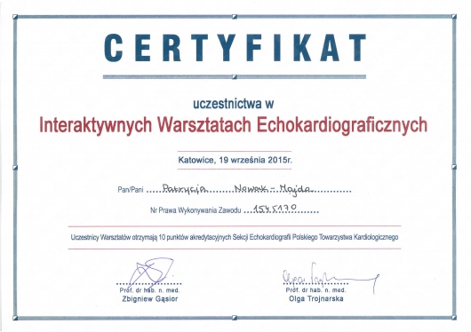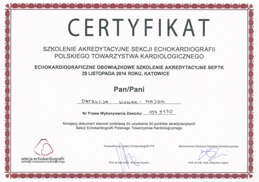 W 2009r. uzyskałam tytuł specjalisty z zakresu chorób wewnętrznych a w 2014r.