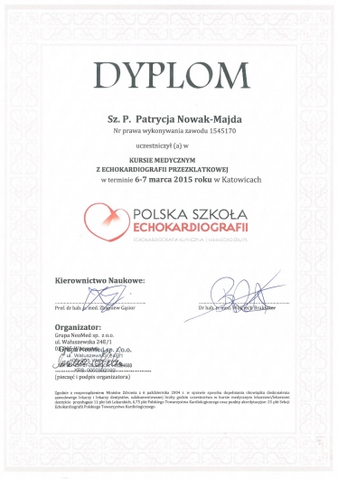 rytmu serca. Wykonuję badania echokardiograficzne przezklatkowe i