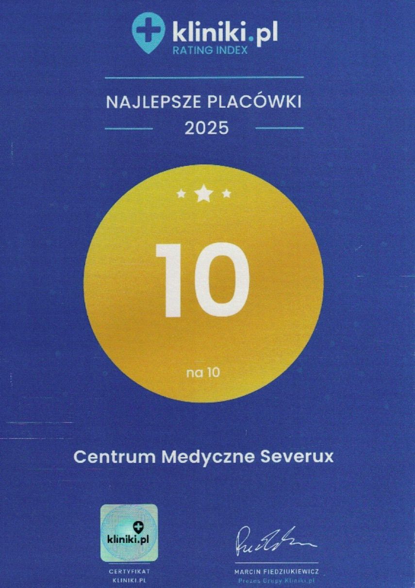 Centrum Medyczne Severux działa w ramach dwóch placówek zlokalizowanych w Chorzowie (ul. Katowicka 157) oraz w nowej placówce w Świętochłowicach (ul. Sikorskiego 1), znajdującej się bezpośrednio przy zjeździe z Drogowej Trasy Średnicowej. Zespół naszych specjalistów liczy ponad 100 osób i stale się powiększa. To fantastyczni ludzie - kompetentni i empatyczni, traktujący pacjenta z szacunkiem i troską. Znajdziesz u nas m.in. szybkie terminy konsultacji, aparaturę medyczną najwyższej jakości, umiarkowane ceny, łatwy dojazd i duży osobny parking. Zapraszamy do skorzystania z prywatnych konsultacji w następujących specjalnościach: alergologia, akupunktura, chirurgia naczyniowa i ogólna, dermatologia, diabetologia, dietetyka, endokrynologia, fizjoterapia, ginekologia, hematologia, interna, kardiologia, laryngologia, medycyna estetyczna, medycyna pracy, neurologia, okulistyka, onkologia, optometria, ortodoncja, ortopedia, pediatria, podologia, poradnia leczenia bólu, poradnia leczenia ran przewlekłych, poradnia leczenia stopy cukrzycowej, pracownia USG, psychiatria, psychologia, reumatologia, stomatologia i urologia. W placówce w Świętochłowicach działa też punkt pobrań oraz pracownia radiologii stomatologicznej. Do zobaczenia w CM Severux! : )