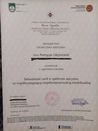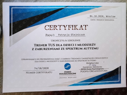 Szczerze polecam. Terapia dziecka w spektrum autyzmu, Aspergerem i adhd. Duża empatia, zrozumienie, kontakt z dzieckiem. Widzimy pozytywne efekty pracy.