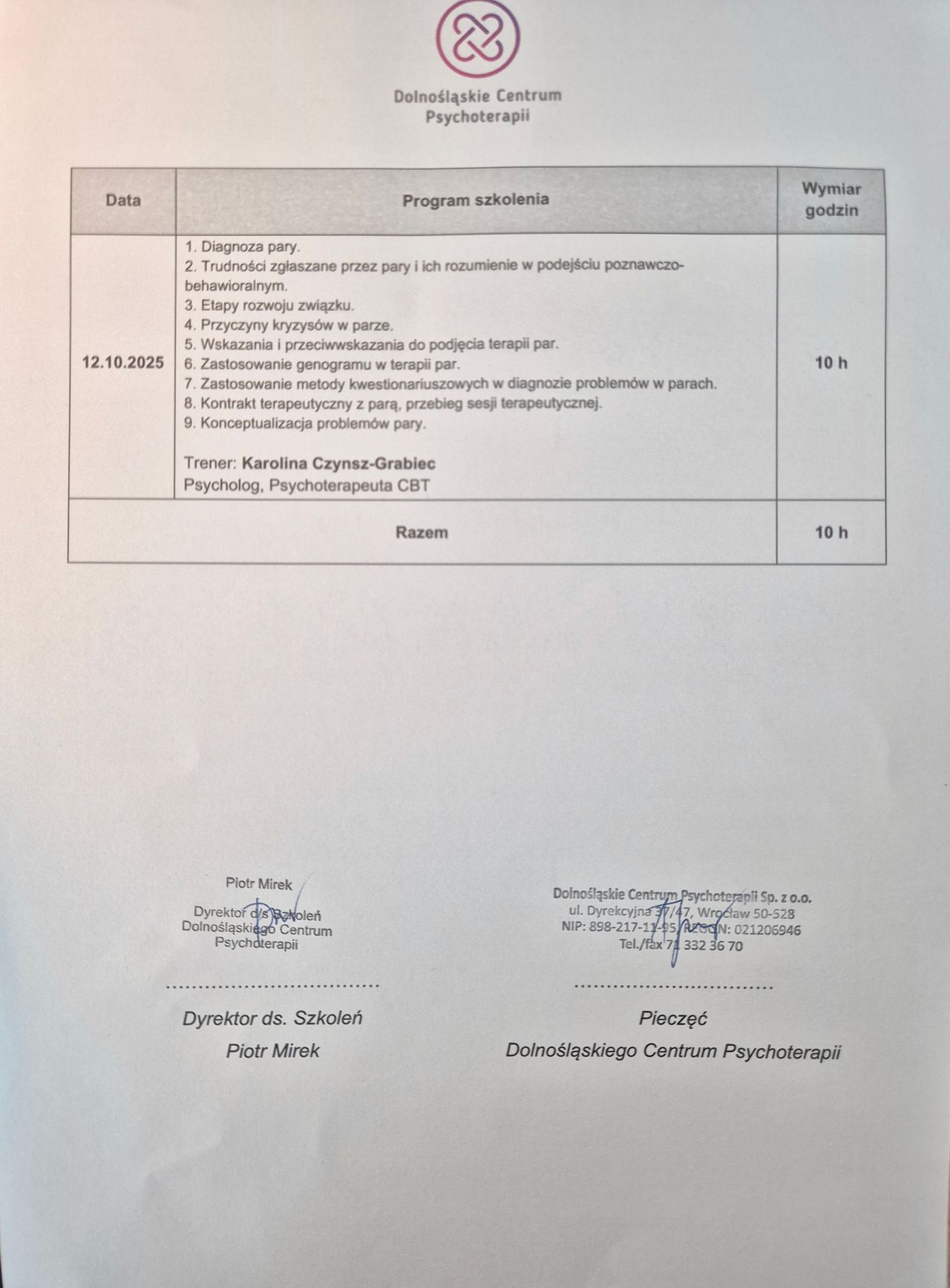 Psychoterapeuta certyfikowany