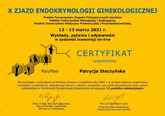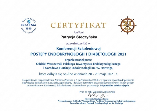 Tytuł specjalisty chorób wewnętrznych uzyskałam w 2017 r., a w 2018 r. rozpoczęłam specjalizację z endokrynologii.