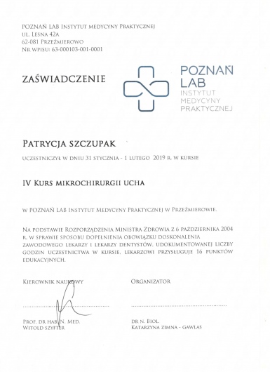 W swojej praktyce klinicznej zajmuję się kompleksowym leczeniem i diagnostyką chorób uszu, nosa, zatok przynosowych, gardła i krtani.