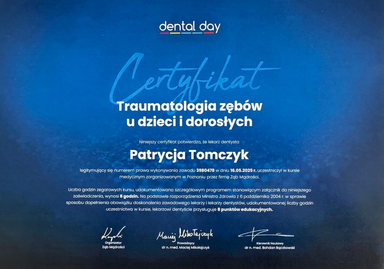 Jesteś już po wizycie u lek. dent. Patrycja Tomczyk? Daj znać, co myślisz. Inni pacjenci będą wdzięczni za pomoc w wyborze najlepszego specjalisty.