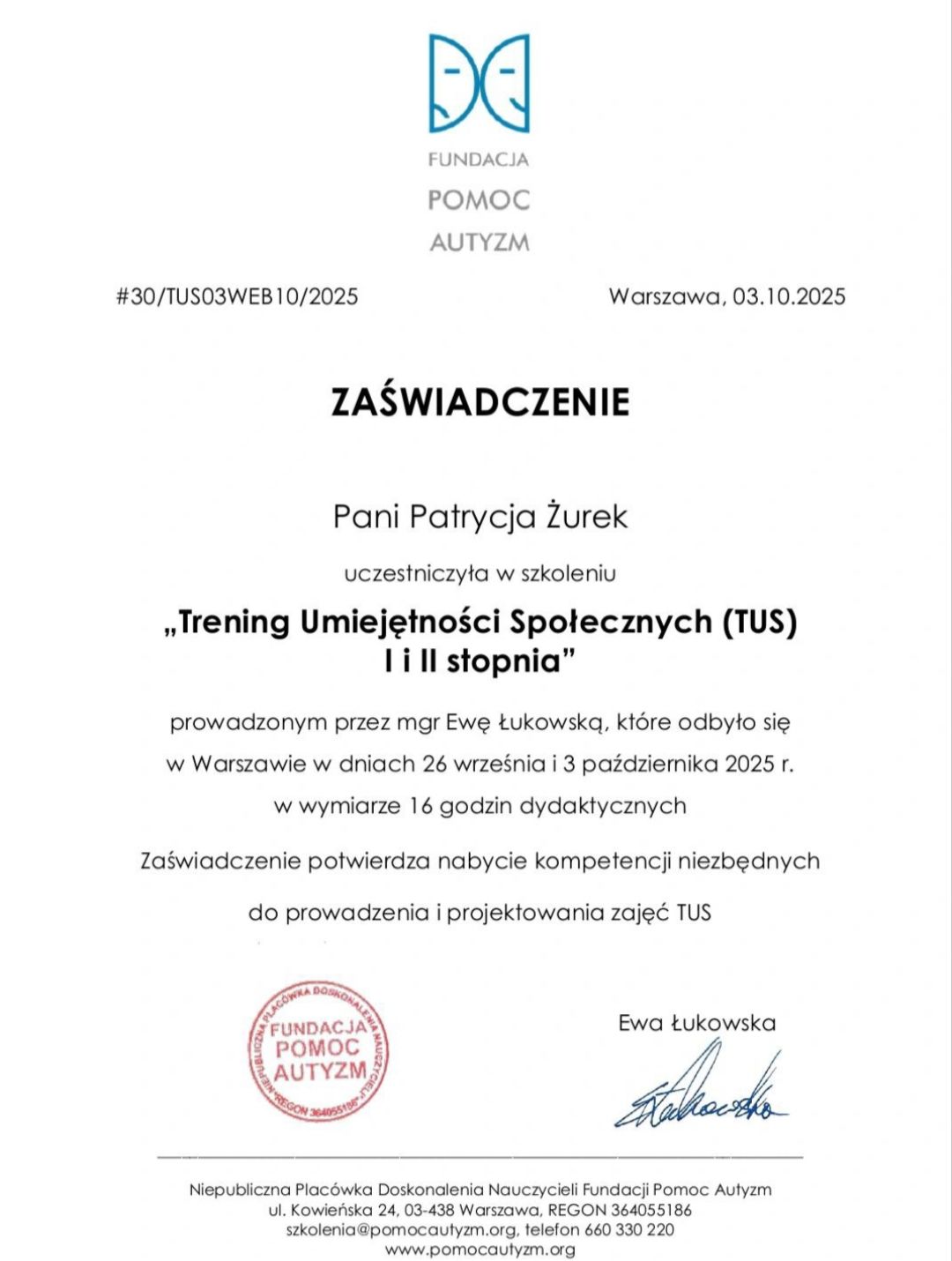 Trening Umiejętności Społecznych (TUS) I i II stopnia