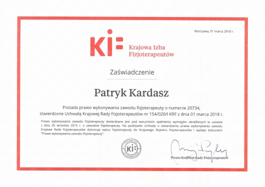 Polecam fizjoterapeutę Pana Magistra Kardasza za profesjonalizm, wiedzę praktyczną i teoretyczną, zaangażowanie oraz życzliwość. A nade wszystko skuteczność!
