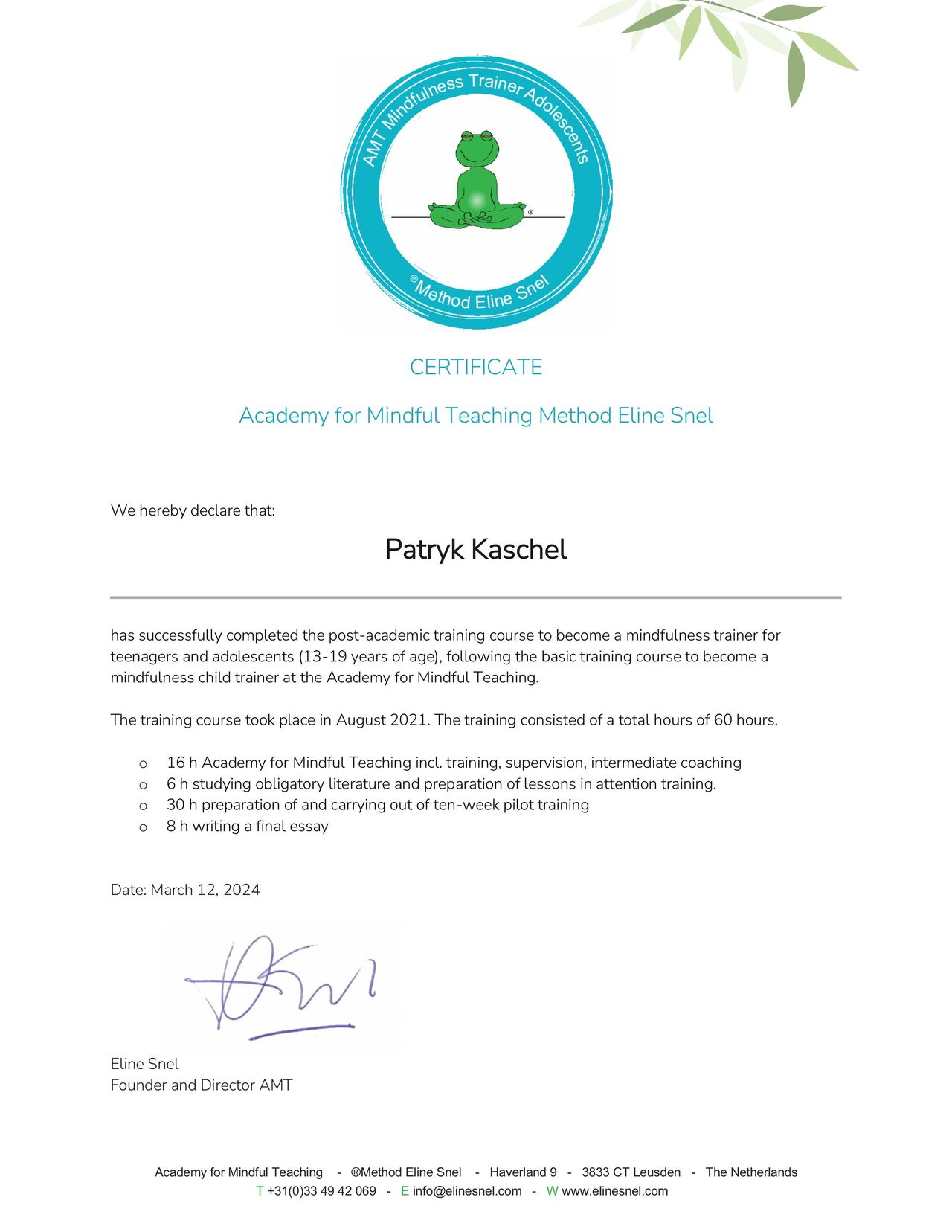 Jestem psychologiem z Uniwersytetu Gdańskiego, trenerem uważności dla dzieci i młodzieży metodą Eline Snel ©, instruktorem jogi, medytacji oraz funkcjonalnego oddychania.
