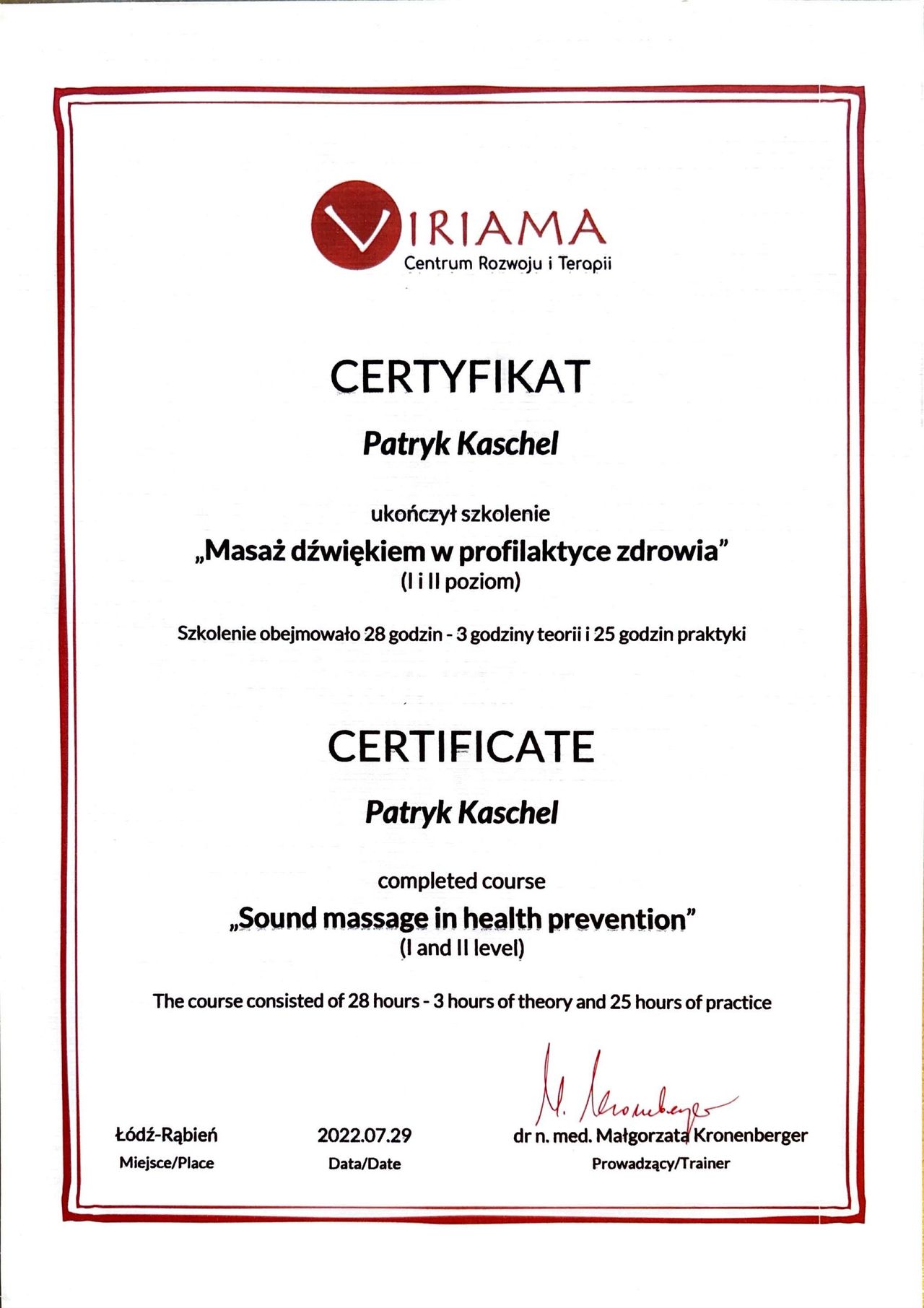 Serdecznie polecam Pana Patryka. Każda rozmowa z nim, to balsam dla duszy i ukojenie nerwów. Pan Patryk jest bardzo empatyczną osobą, wsłuchaną w rozmówcę. Spotkania i rozmowy z Nim, były dla mnie bardzo wspierające. Korzystałam zarówno z konsultacji psychologicznych, jak i zajęć relaksacyjnych.