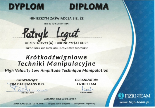 Dotychczas ukończyłem wiele szkoleń i kursów podyplomowych, m. in.: