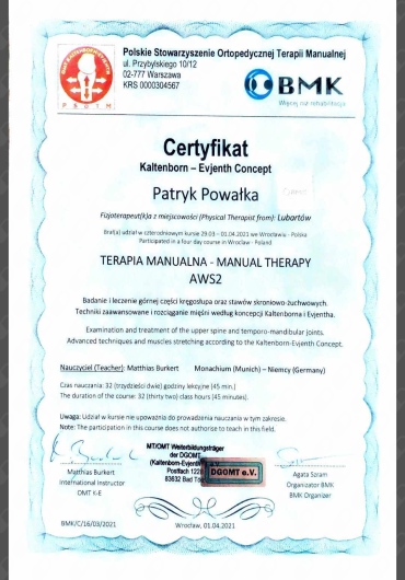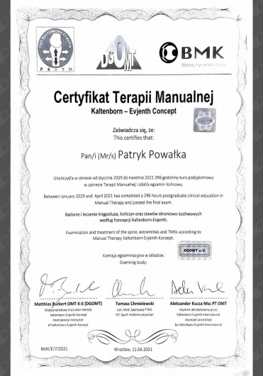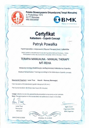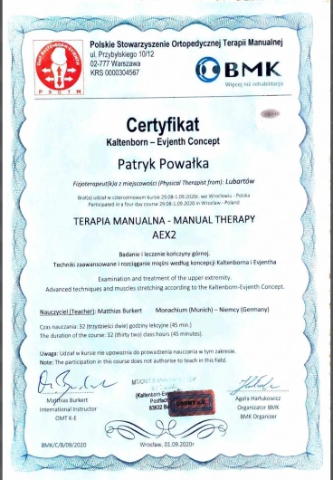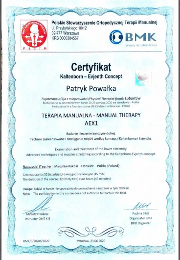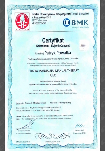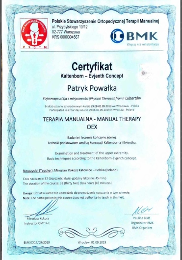 Pierwsze wrażenie bardzo pozytywne. Po wstępnym badaniu Pan Patryk nacisnął tu, nacisnął tam, tu pomasował, ból ustąpił zakres ruchu znacząco sie poprawił.