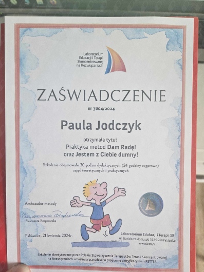 Pani psycholog wykazała się wysokim poziomem kompetencji, empatii oraz umiejętnością nawiązania dobrego kontaktu. Udzielone przez nią wskazówki okazały się trafne i skuteczne – w krótkim czasie zaobserwowaliśmy wyraźną poprawę w funkcjonowaniu dziecka. Z pełnym przekonaniem rekomenduję współpracę z Panią psycholog.