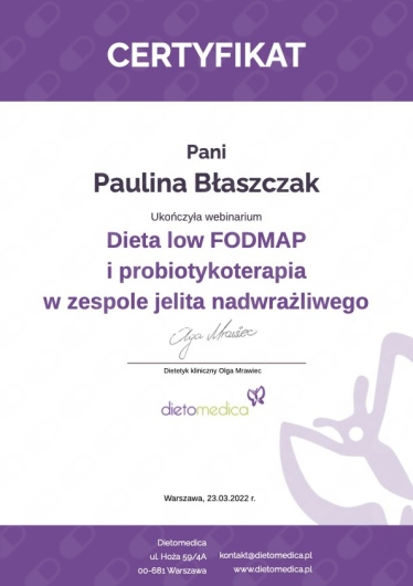 Dyplomowany dietetyk kliniczny specjalizujący się w psychodietetyce.