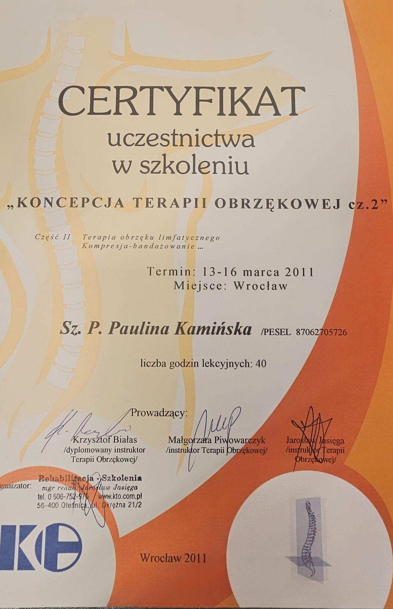 Profesjonalne podejście i zaangażowanie.P.Paulina pomogła zwalczyć mi obrzęki po operacji onkologicznej(dziękuję )