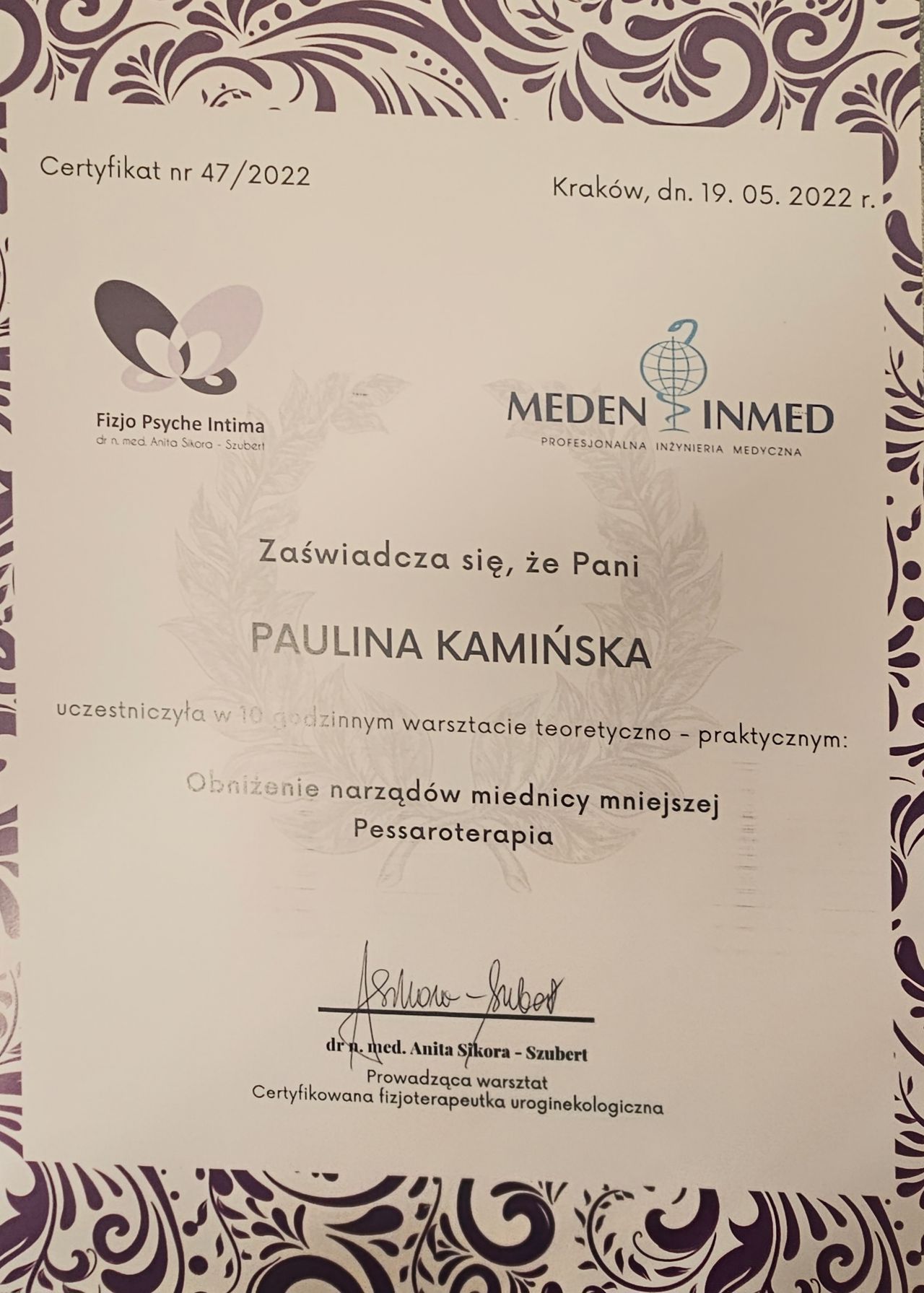 - terapia uroginekologiczna( nietrzymanie moczu, wysiłkowe nietrzymanie moczu, pęcherz nadreaktywny etc.),