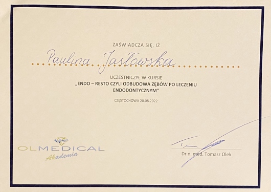 Mam przyjemność korzystać z usług Pani Pauliny od 3 lat. Zupełnie nowy poziom precyzji z pracą na mikroskopie, którego wcześniej nie znałem. Jasna komunikacja i zawsze przyjazna atmosfera. Jestem niesamowicie zadowolony zarówno z przeglądów i uzupełniania małych ubytków oraz z leczenia kanałowego!