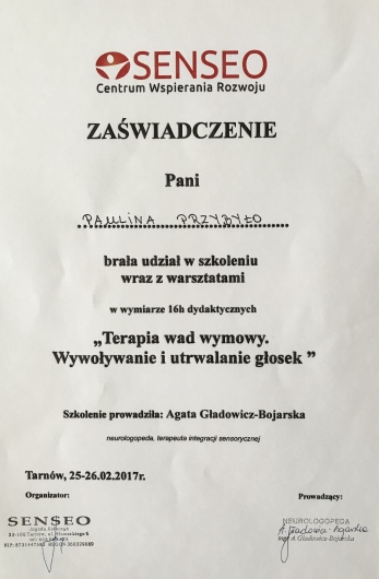 Pani Paulina jest świetnym specjalistą! Przeprowadziła z nami wnikliwy wywiad, wyjaśniła wszystkie wątpliwości. Wykazała się doskonałym podejściem do dziecka, które na co dzień jest dość zamknięte w sobie. U Pani Pauliny natomiast dziecko otworzyło się i chętnie wykonywało wszystkie ćwiczenia! Jesteśmy zachwyceni przebiegiem wizyty, rzetelnością i skrupulatnością Pani Pauliny. Serdecznie polecam!