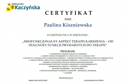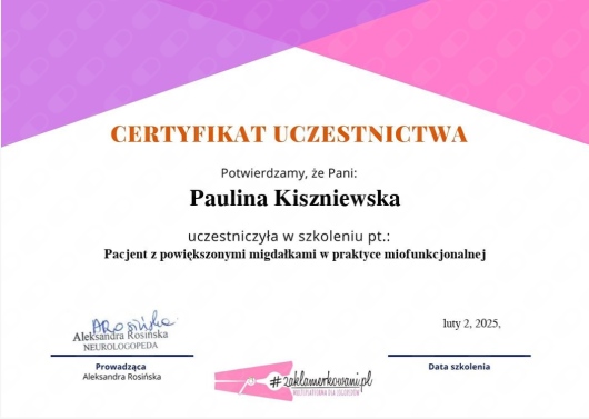 Polecamy Panią Paulinę, wizyta przebiegła w miłej atmosferze. Pani Paulina ma super podejście do dzieci, które owocuje tym, że dziecko się nie boi i od razu czuje się jak u siebie, co przekłada się na współpracę. Po wizycie dostaliśmy dokładny i szczegółowy opis ćwiczeń, wszystko bardzo profesjonalnie! Jeszcze raz - polecam!