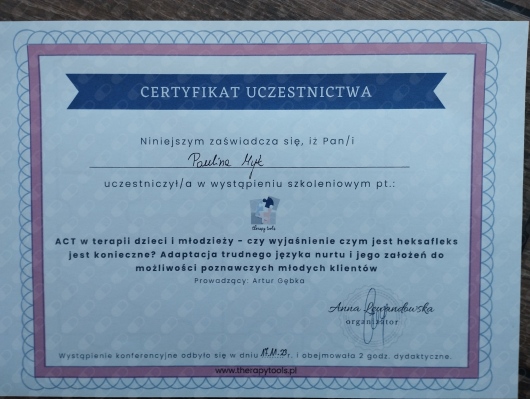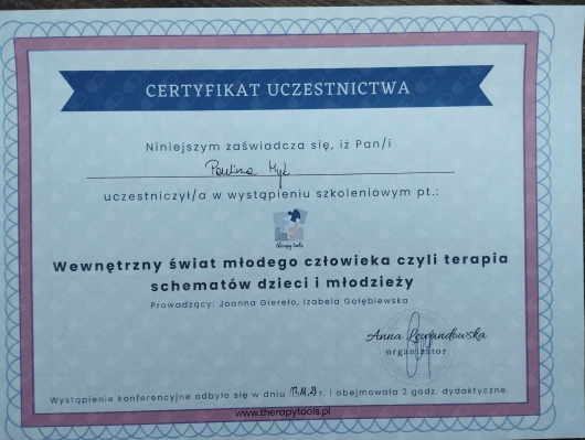 Psycholog i psychoterapeuta pełen pasji do swojej pracy i chęci pomocy drugiemu człowiekowi. Pani Paulina bardzo profesjonalnie podeszła do mojego problemu. Czuje się wysłuchana i w pełni zaopiekowana.
