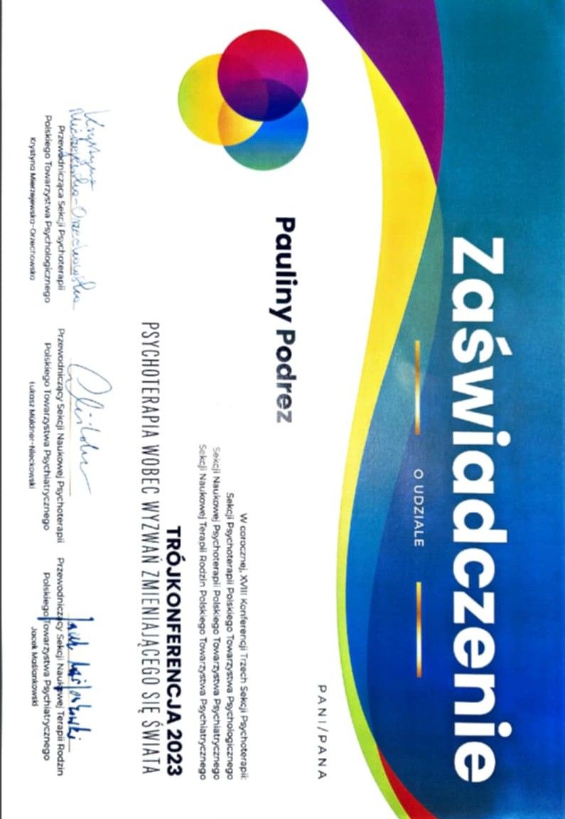 Moje doświadczenie terapeutyczne obejmuje również pracę z dziećmi i młodzieżą poszerzając moją wiedzę z rozwoju psychoseksualnego, którą obecnie wykorzystuje w pracy terapeutycznej z dorosłymi i parami.