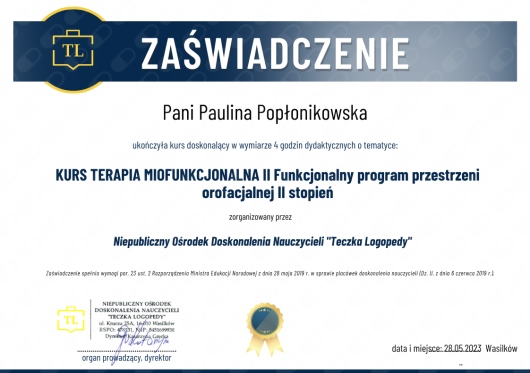 Miałem ogromną przyjemność korzystać z usług pani dr. Pauliny, wybitnej logopedy. Jej profesjonalizm, empatia i indywidualne podejście sprawiają, że każda wizyta jest nie tylko skuteczna, ale również przyjemna. Dzięki jego nowoczesnym metodom i zaangażowaniu, jestem przekonany że moje postępy w terapii będą imponujące (chcę poprawić wymowę spółgłoski i dykcję). Pani Paulina to niezwykle troskliwy specjalista, którego z całego serca polecam każdemu potrzebującemu wsparcia logopedycznego i chcących pracować nad swoją wymową.