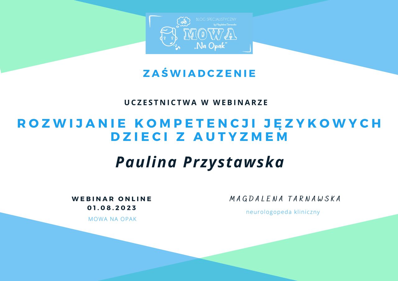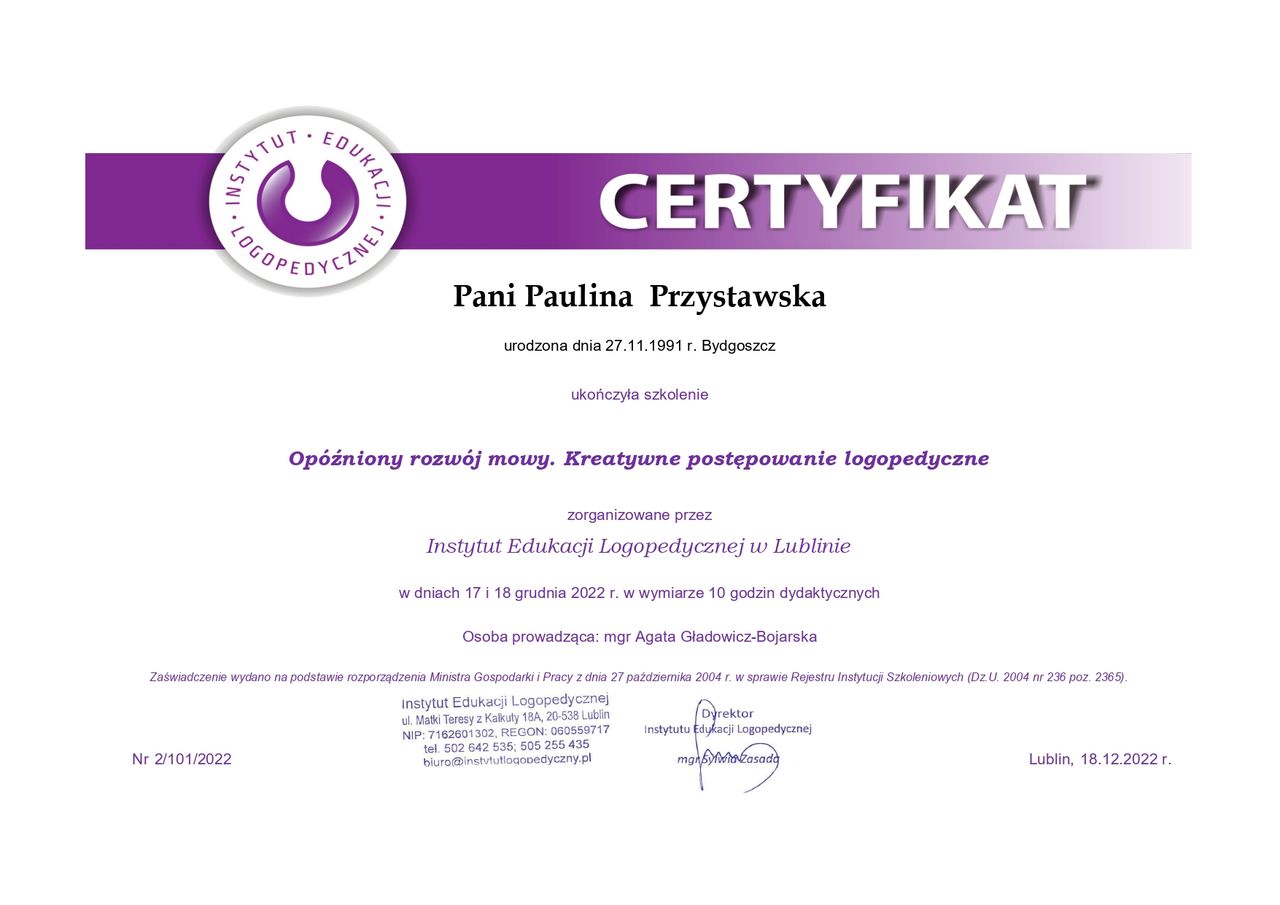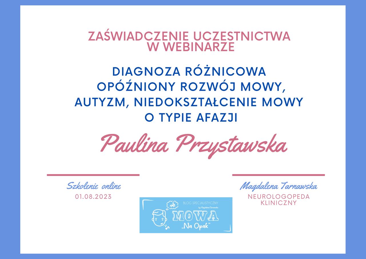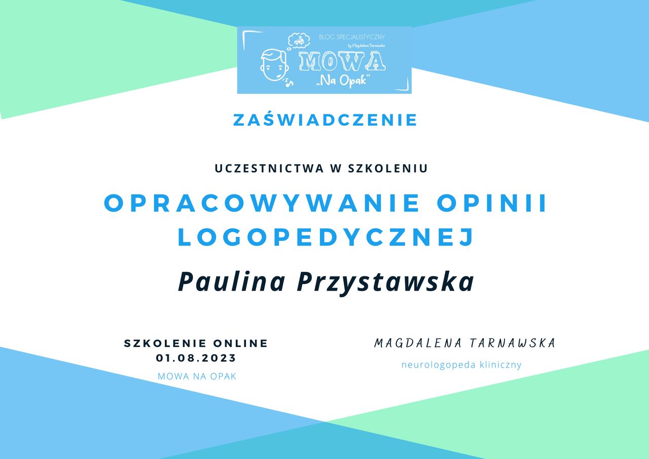 Jestem logopedą oraz neurologopedą, specjalizującą się w terapii dzieci i osób dorosłych.