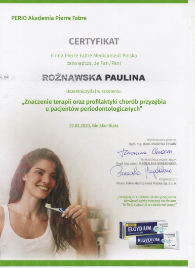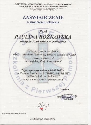 Ukończyłam Policealne Studium Medyczne - uzyskując tytuł Asystentki i Higienistki Stomatologicznej, Beskidzką Wyższą Szkołę Umiejętności - na kierunku Fizjoterapia oraz Górnośląską Wyższą Szkołę Handlową - z zakresu Turystyki Uzdrowiskowej i Odnowy Biologicznej. Rozwój jest dla mnie bardzo ważny, dlatego wciąż podnoszę swoje kwalifikacje. Staram się, by Pacjenci czuli się w naszej klinice stomatologicznej bezpiecznie oraz by usługi, które dla nich świadczę, były wykonywane na najwyższym poziomie.