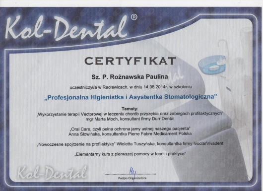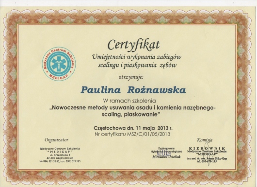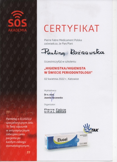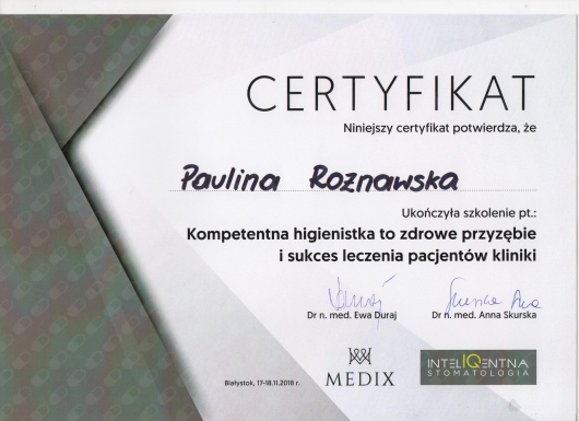 Wizyta odbyła się w przemiłej atmosferze. Pani Paulina jest bardzo kompetentną osobą, wszytko dokładnie wyjaśnia i dba o komfort pacjenta. Zabieg higienizacji przeprowadzony profesjonalnie. Polecam