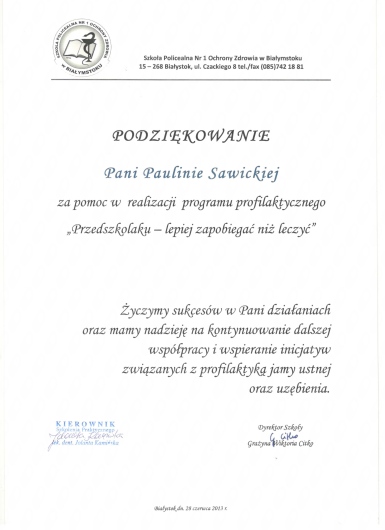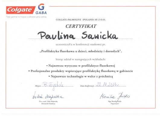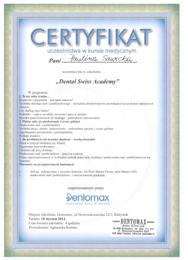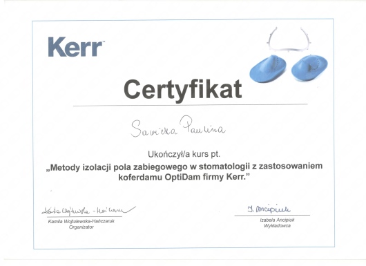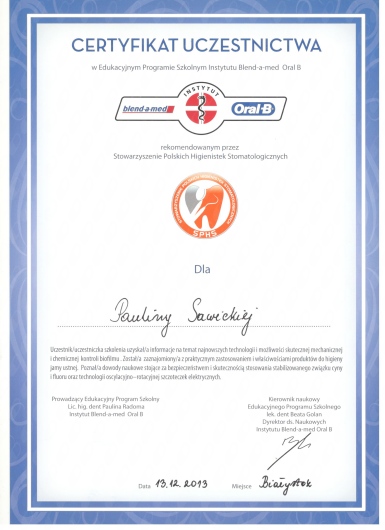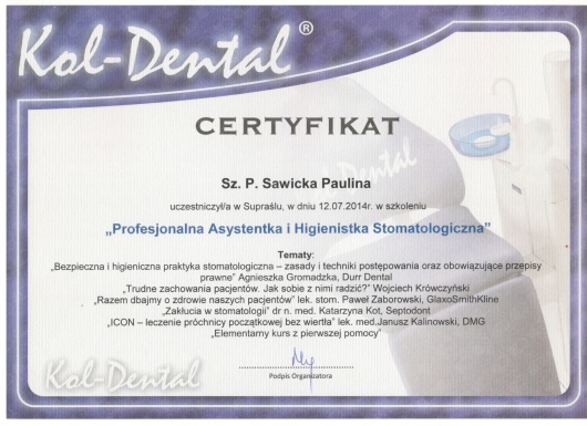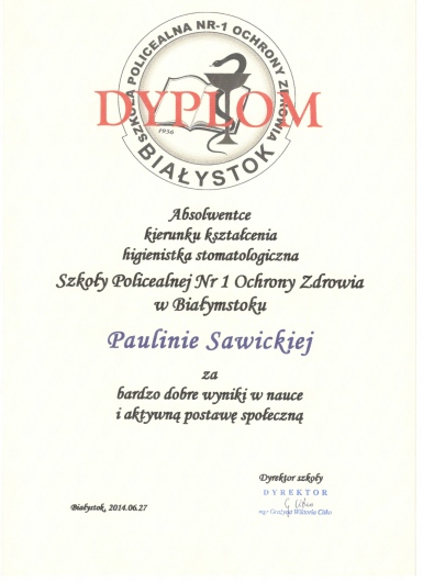 W 2009r ukończyłam szkołę na kierunku Asystentka Stomatologiczna a od 2014r jestem Dyplomowana Higienistką.