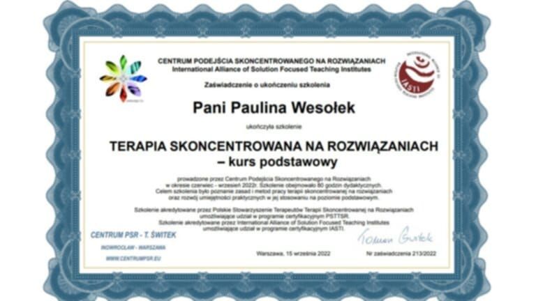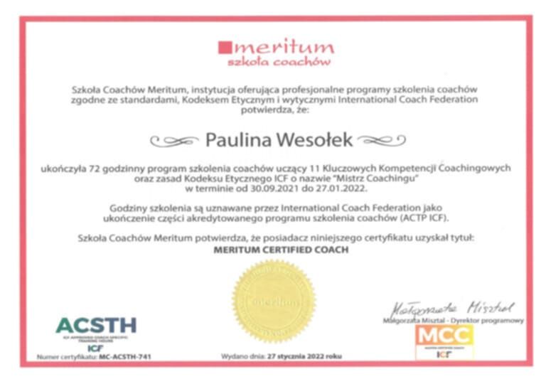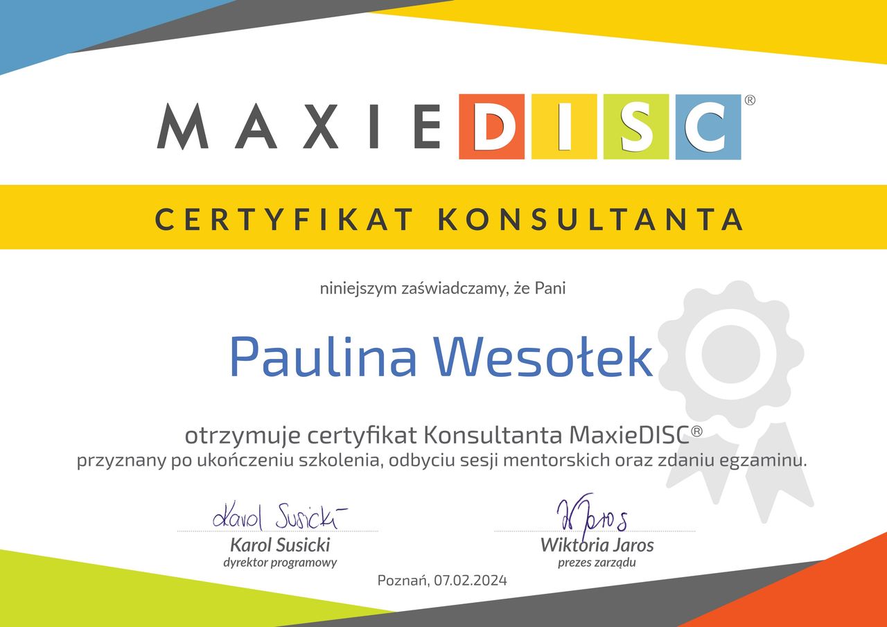 Jestem ogromnie wdzięczna za tę współpracę i z pełnym przekonaniem polecam ją każdemu, kto szuka skutecznego wsparcia i realnej zmiany.• Paulina Wesołek Care • coaching kariery •