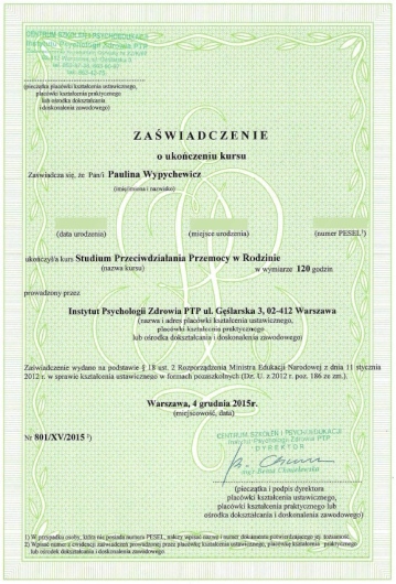 Nazywam się Paulina Wypychewicz, jestem psychologiem i psychoterapeutką w podejściu psychodynamicznym. Ukończyłam Laboratorium Psychoedukacji w Warszawie.