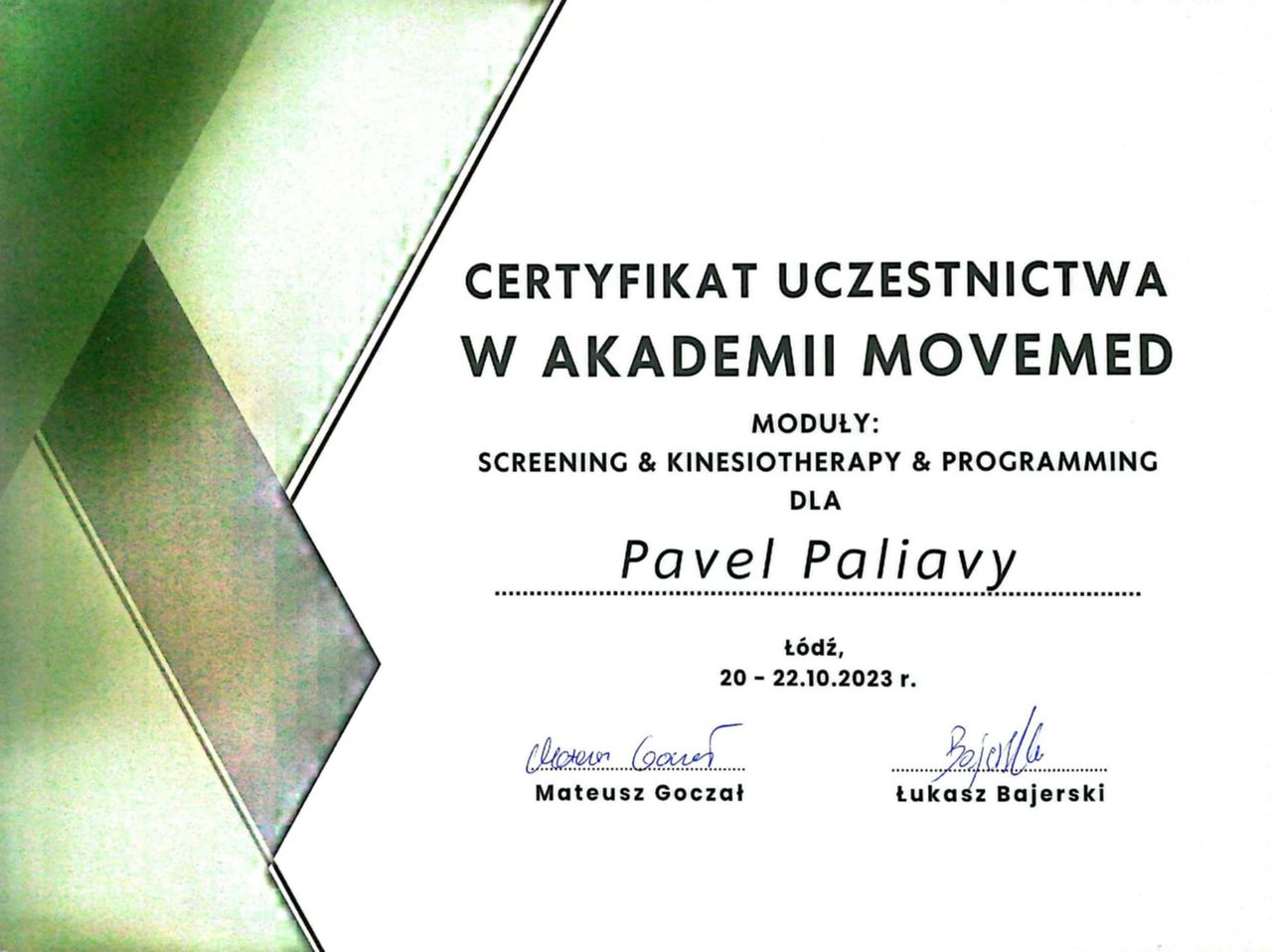 Jaki jest zakres porad oferowanych przez Pavel Paliavy?Pavel Paliavy to fizjoterapeuta. Na podstawie swojego doświadczenia i wykształcenia Pavel Paliavy oferuje usługi takie jak: fizjoterapia, Fizjoterapia pourazowa, fizjoterapia przed- i pooperacyjna, rehabilitacja sportowców, konsultacja fizjoterapeutyczna, masaż klasyczny, masaż leczniczy 60 minut, masaż sportowy, INDIBA terapia, masaż tkanek głębokich.